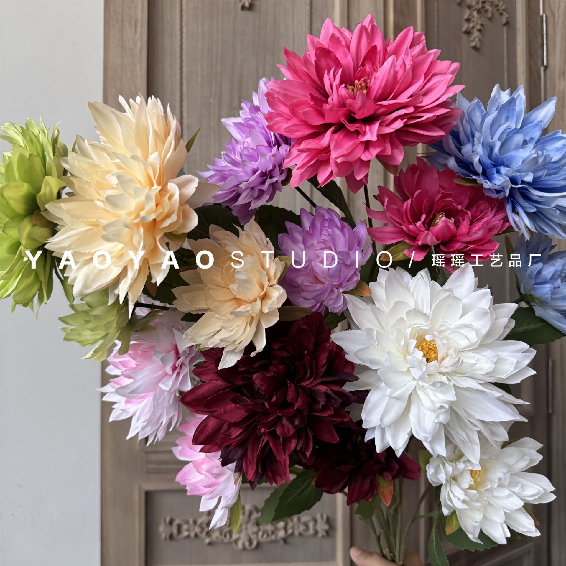 新型2頭の大麗花結婚祝い装飾花撮影道具造花結婚式堂路引生け花爪菊シミュレーション花