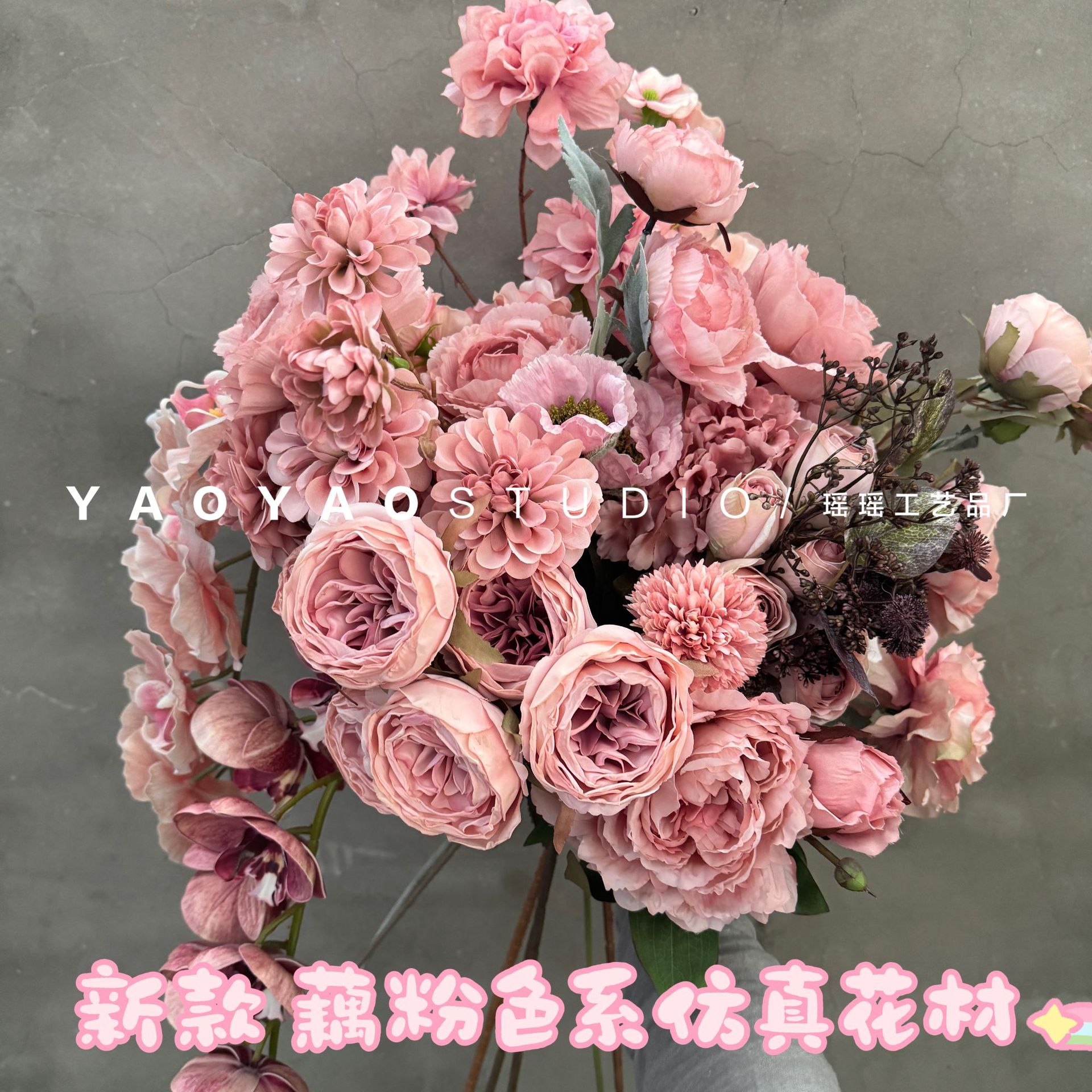 新商品の薯粉系のシミュレーション花材サケ粉の暖かいピンク系のピンクの紫色の家庭の生け花の手の花の素材