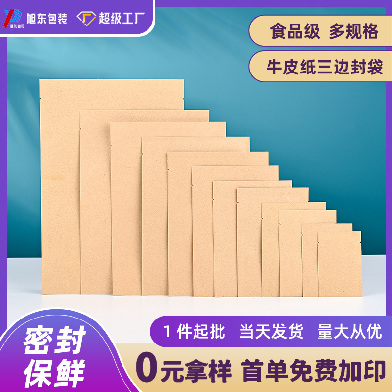 三辺シールアルミ蒸着牛革紙袋、ハーブティー密封袋、牛革紙防湿食品袋、防湿密封