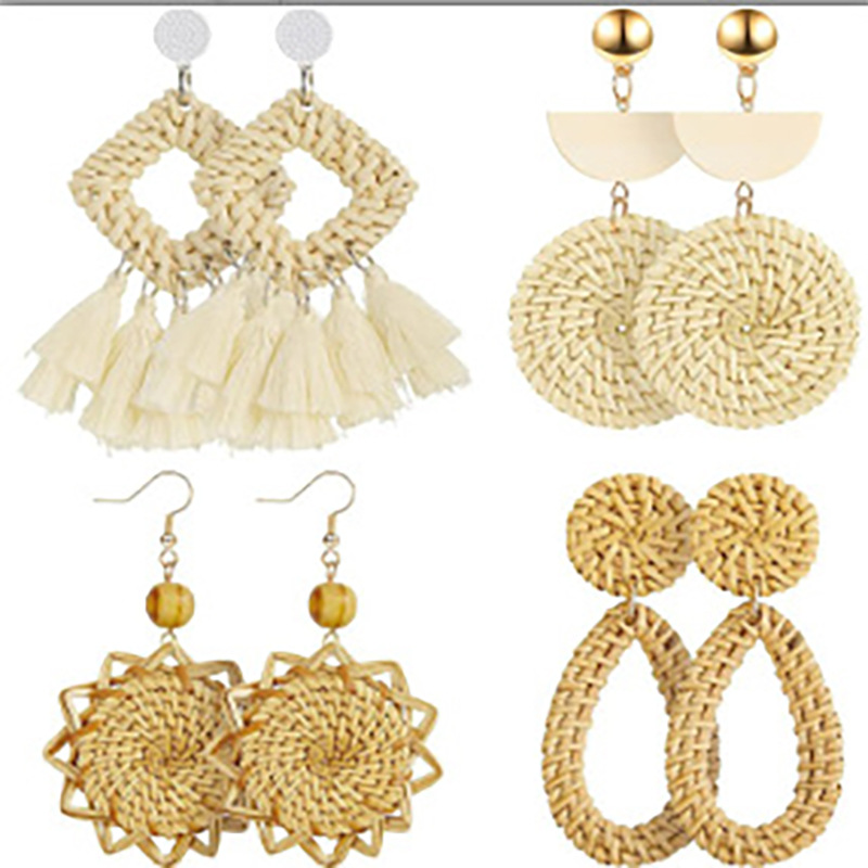 イヤリングホリデースタイルインターネットセレブイヤリングシーサイドイヤーフックイン夏の新しいスタイルラフィア手織り籐イヤリング女性用