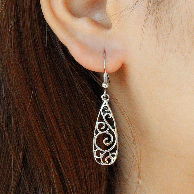 韓装飾wishアマゾン国境を越えたレトロな透かし彫り花水滴イヤリング銀メッキ流蘇長型メーカー卸売り