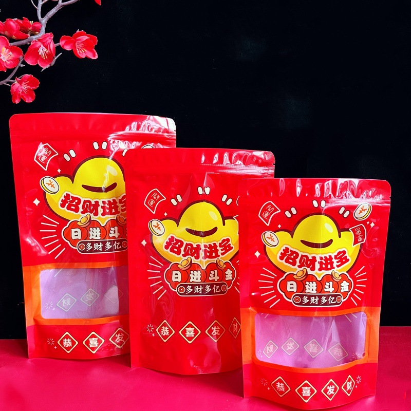 招財進宝喜糖キャンディーの年間包装袋500グラムのドライフルーツ自封袋ギフトバッグ密封口レジャー食