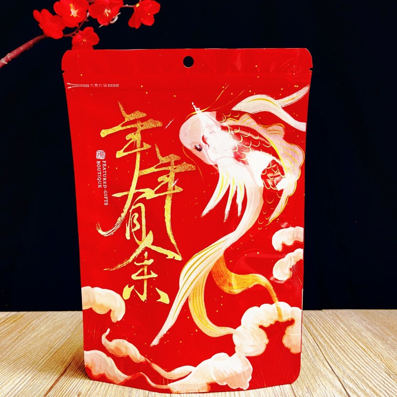 幸運錦鯉新年キャンディー小食袋ビスケット雪花ショートニング牛圧延糖ナッツ焙煎年物包装自封礼