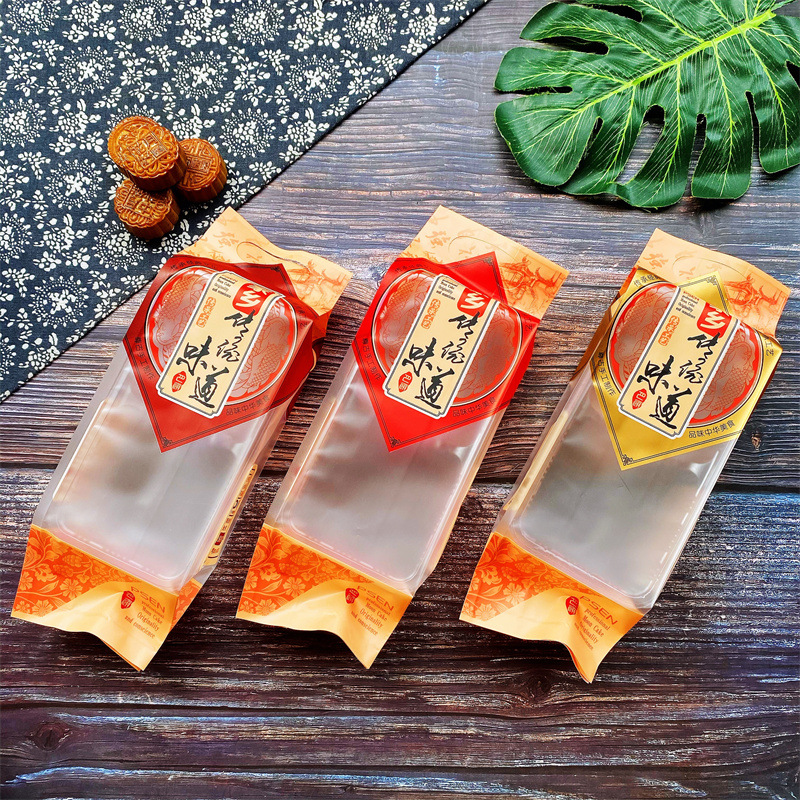 新しい長条故郷の伝統的な味三色フロスト中秋月餅包装500グラム4個入り焙煎手提げ袋