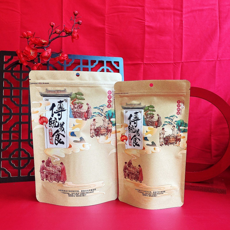 伝統的なグルメクラフト紙袋スナック乾燥果瓜子包装袋は防湿自立乾燥果密封袋を厚くしている