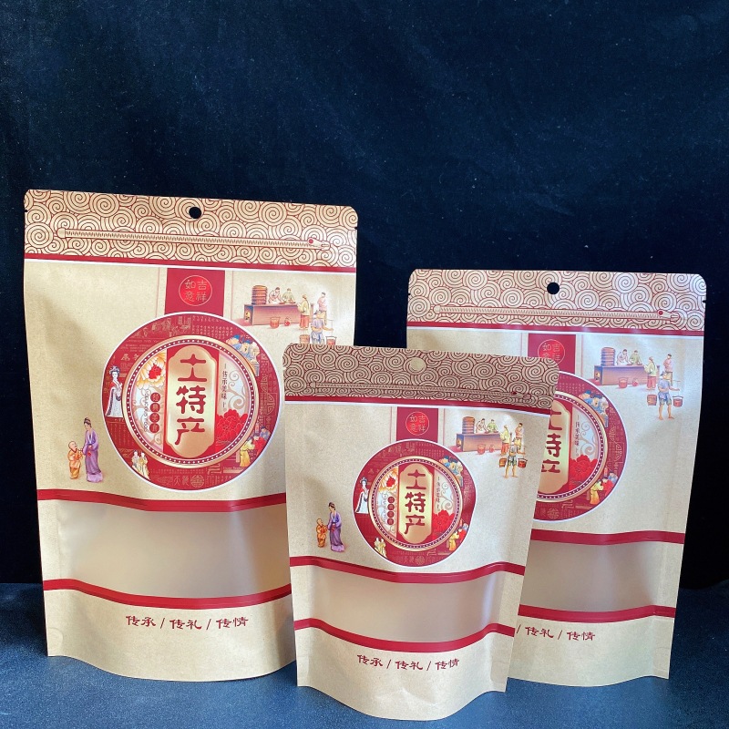 お土産包装袋汎用クラフト紙自立自封袋半斤1斤入り干物プレゼント間食炒め