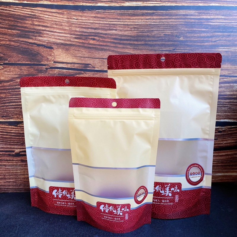 厚手の年用品の伝統的な美味しい包装袋の自立型タイプの窓開けプラスチックのスナックのジッパーの密封袋の食品の自封袋
