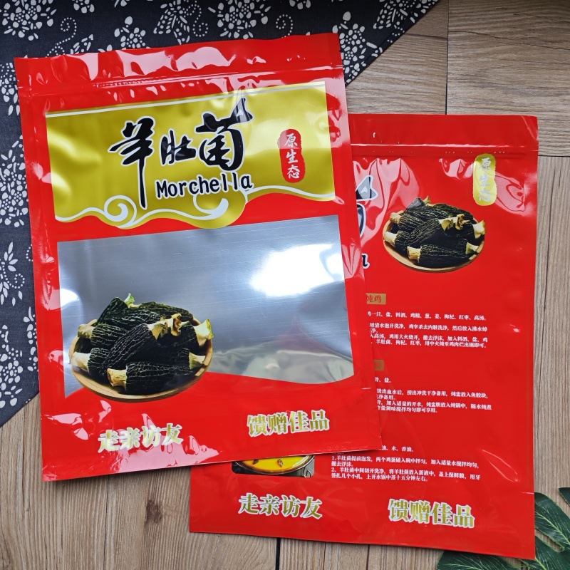 オリジナルエコロジカルハーフポンドアミガサタケ包装袋 250 グラムアミガサタケセルフシールジッパーバッグ赤い土産袋