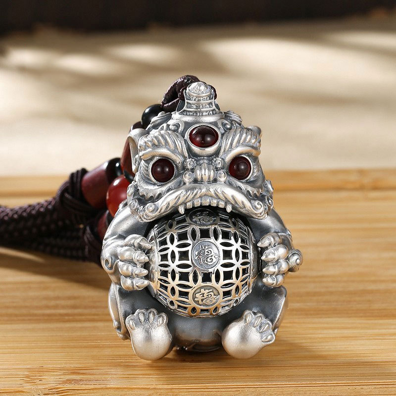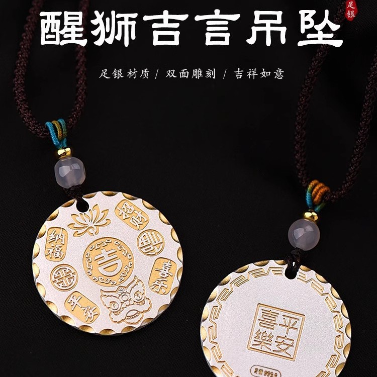 泰莉足銀正版描金吉言目が覚めた獅子の中実のつり札の純銀の百福の国の潮の平安の喜びの納福はぶら下がっています。