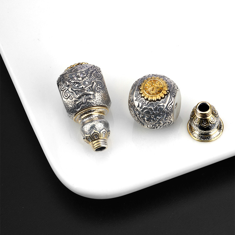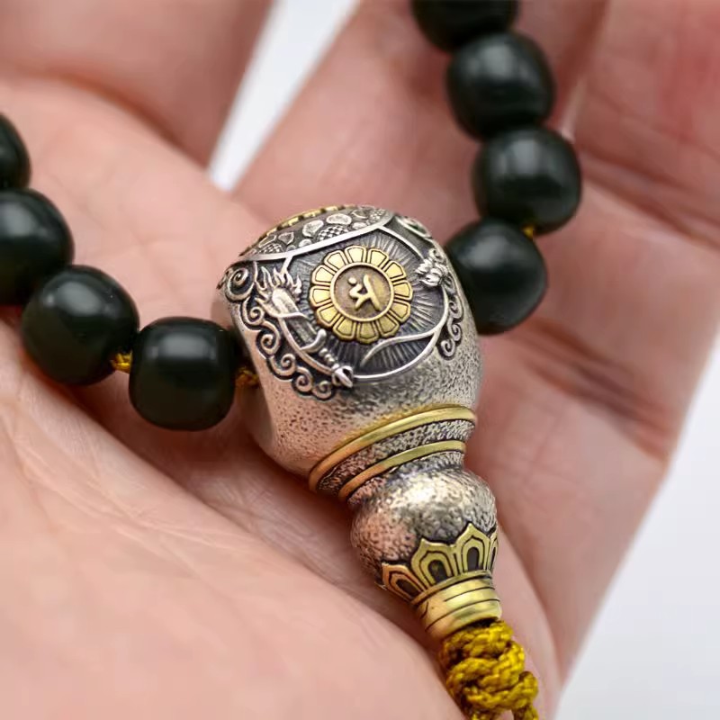 泰莉オリジナルチベット式純銀仏頭三通妙吉祥文殊菩薩文戯仏珠手串DIYアクセサリー