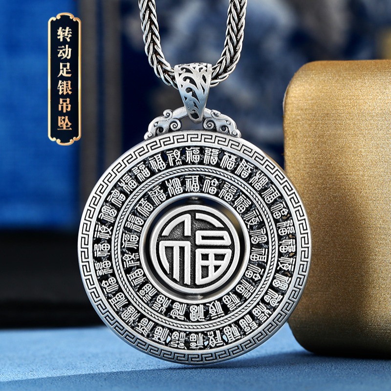 泰莉999足銀万福回転ペンダント純銀男子古法民族風回紋福字男女銀飾り送