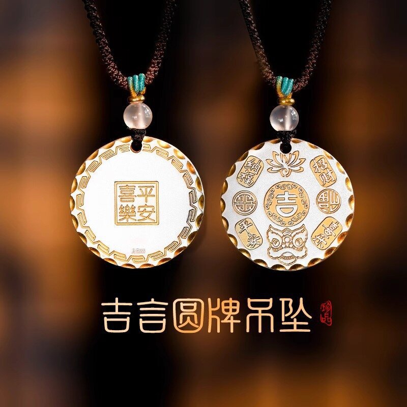 泰莉足銀国風実心吉言平安喜楽円牌ペンダント男女純銀ネックレスペンダントプレゼント