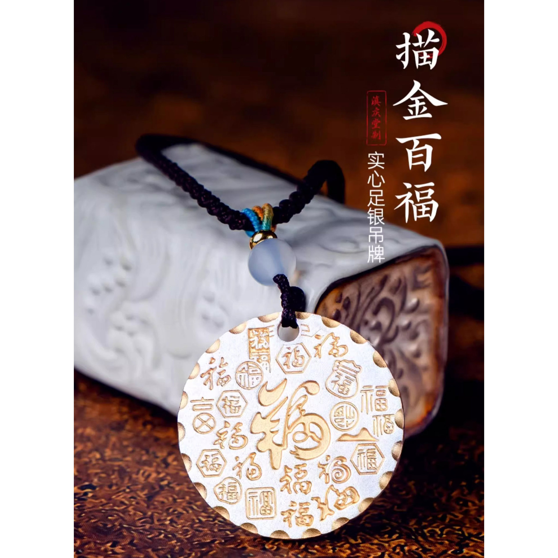 泰莉足銀新中国式描金多福円牌銀ペンダント男女中実ネックレスペンダント
