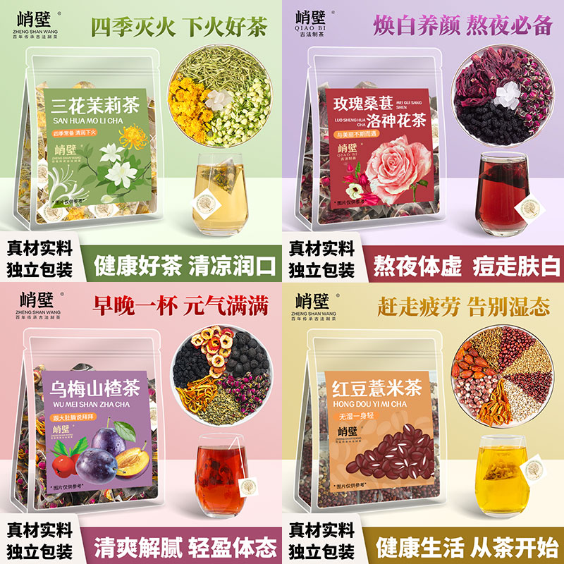 四種類の組み合わせの混合茶の組み合わせのバラのクコの実の金銀の花の独立した包装の花のお茶の公式のお茶の包み