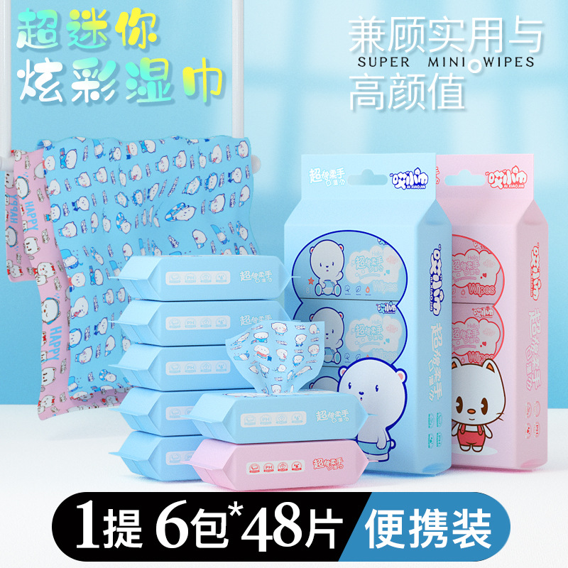ええタオルの多彩なプリント超ミニ携帯小包のウェットティッシュは手口をつけて入学学生のウェットティッシュを清潔にしている