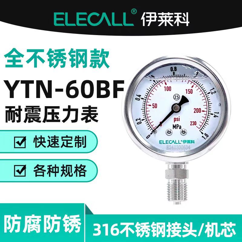 ELECALL ステンレス耐衝撃圧力計 オイル充填水道メーター YTN-100BF/YN100BF
