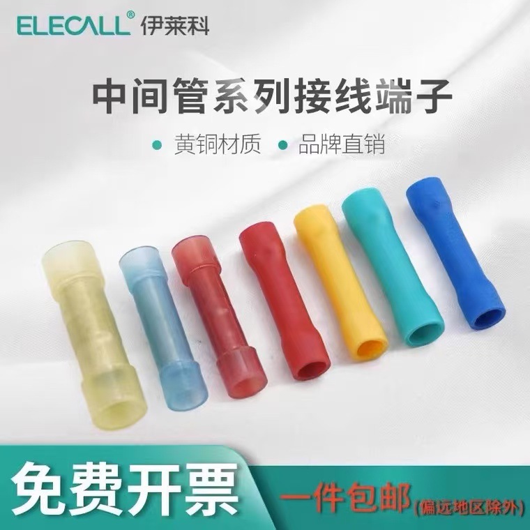 エレコ金具BVシリーズ管状全絶縁端子長形中間継手冷圧端子黄銅中間管