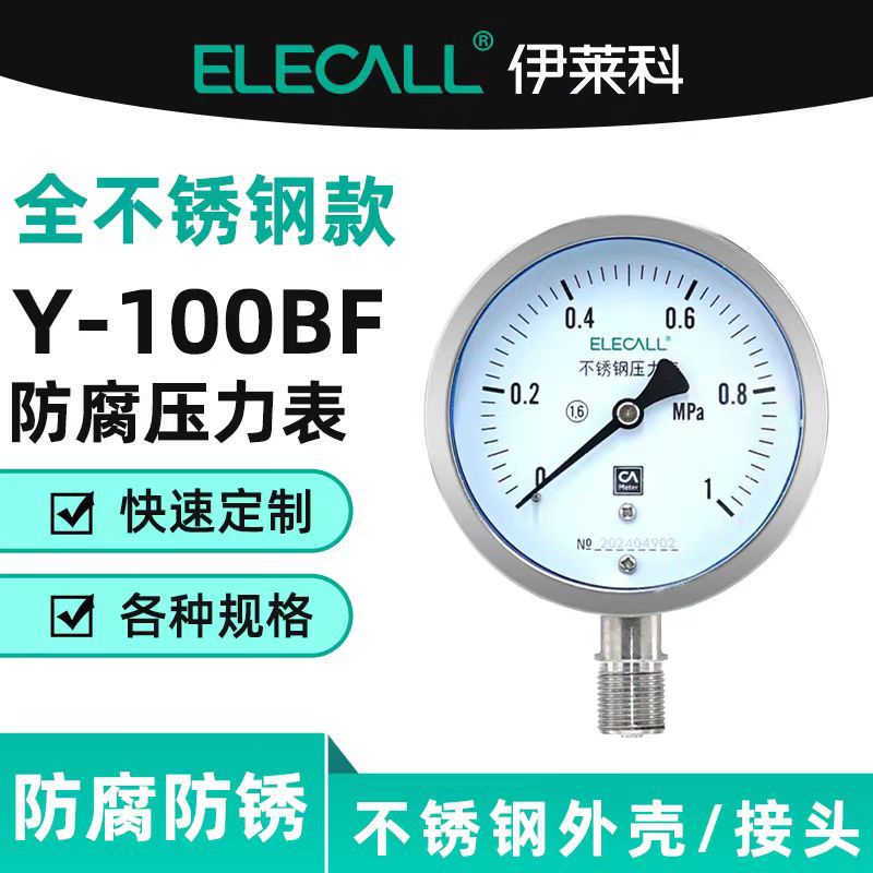 エレコ (エレコール) 304全ステンレス圧力計防腐防錆耐高温水道メーターY-100BF