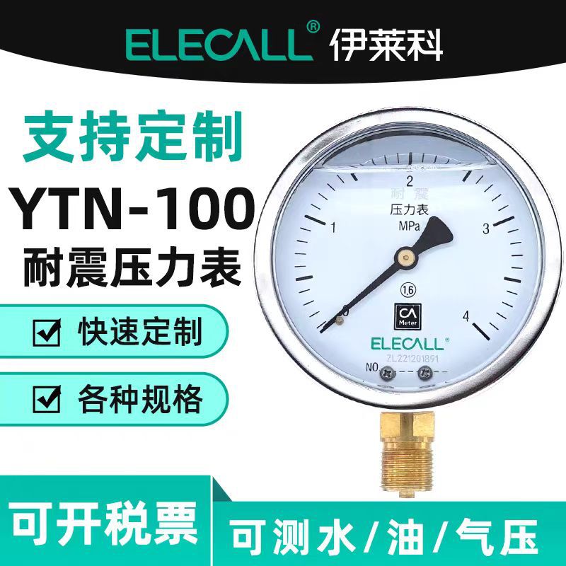 エレコール耐震圧力計油充填耐震真空油計水道メーターYTN-100/YN100
