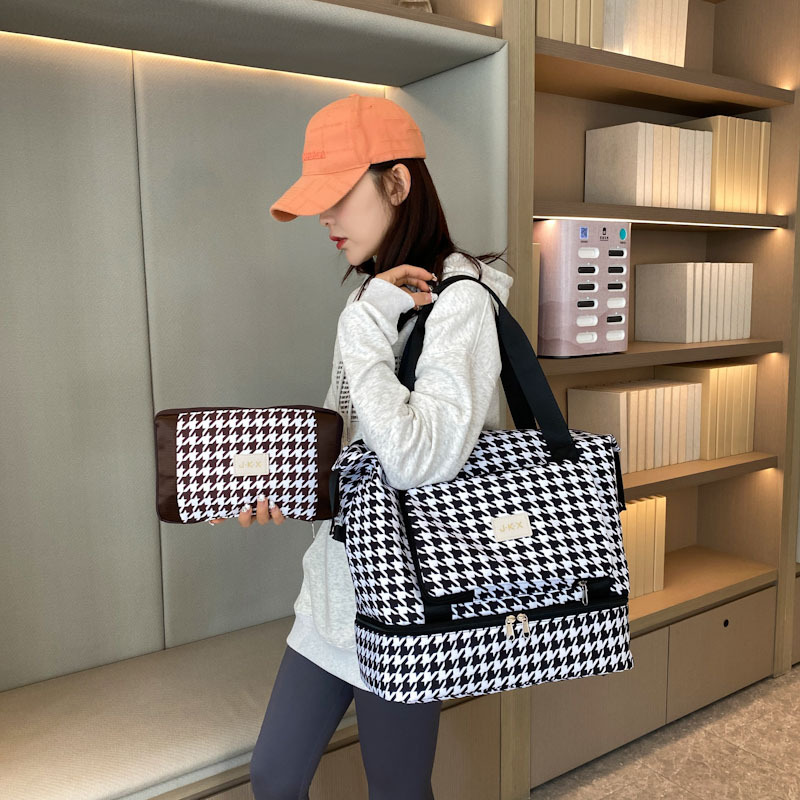旅行鞄大容量折り畳み可能千鳥格出産予定休暇収納荷物鞄出張シンプルショルダーバッグ卸売り