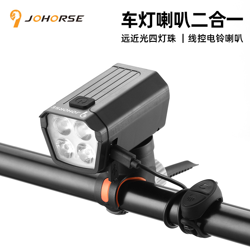 カスタマイズされた自転車ライト、夜間走行用の明るい懐中電灯、USB充電式ヘッドライト、防雨マウンテンバイクライト、サイクリングホーン