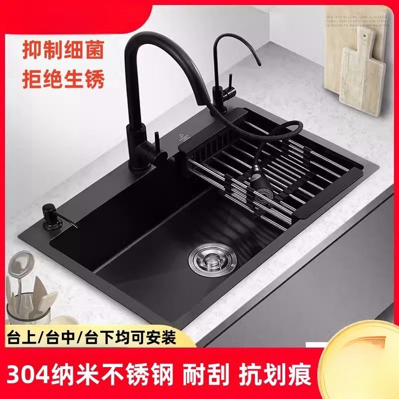 304ステンレスの厚い水の大きいシングル家庭用の黒い金剛のナノの台所台の上で