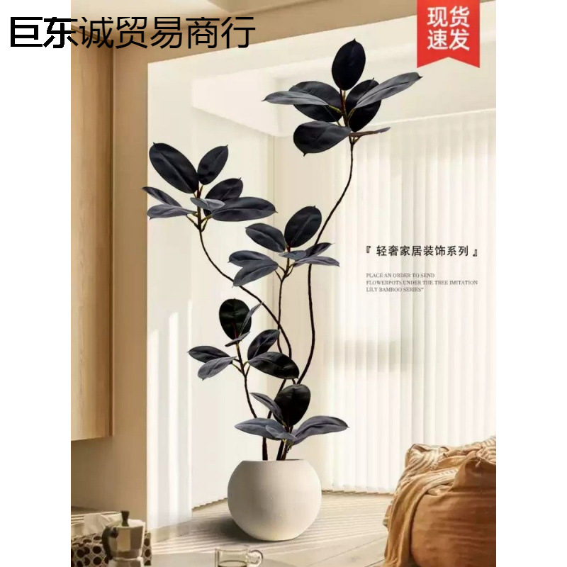 ゴムの木は緑の植の中で古風な室内の軟装の偽の木の大きい盆栽の客をシミュレーションします。
