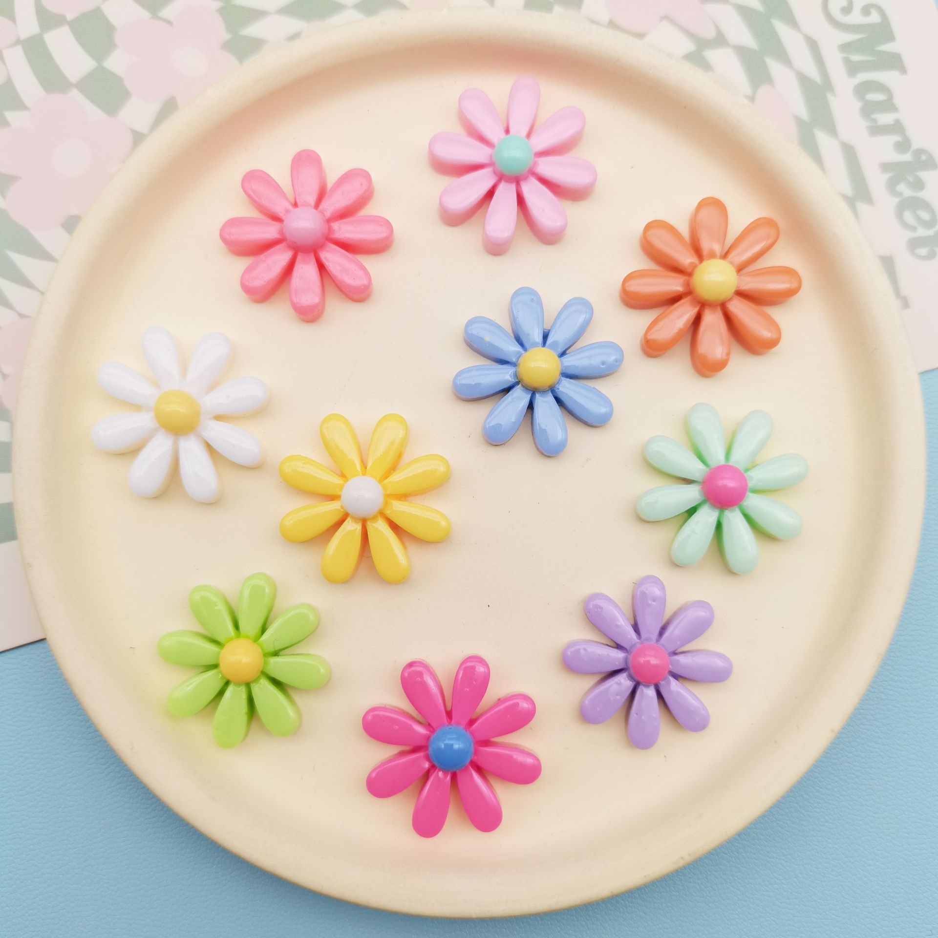 19 ミリメートル小さなデイジーフラワークリーム接着剤ジュエリーアクセサリー diy 子供のヘアアクセサリーヘアピン素材携帯電話ケースパッチ