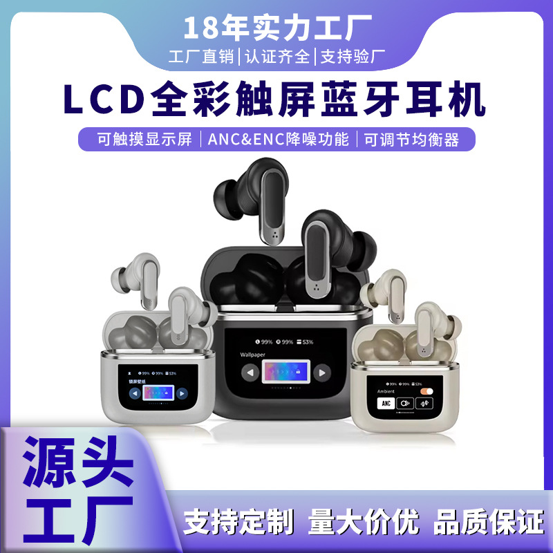 智能彩屏蓝牙耳机 触摸ANC主动双降噪入耳式无线蓝牙耳机跨境专供