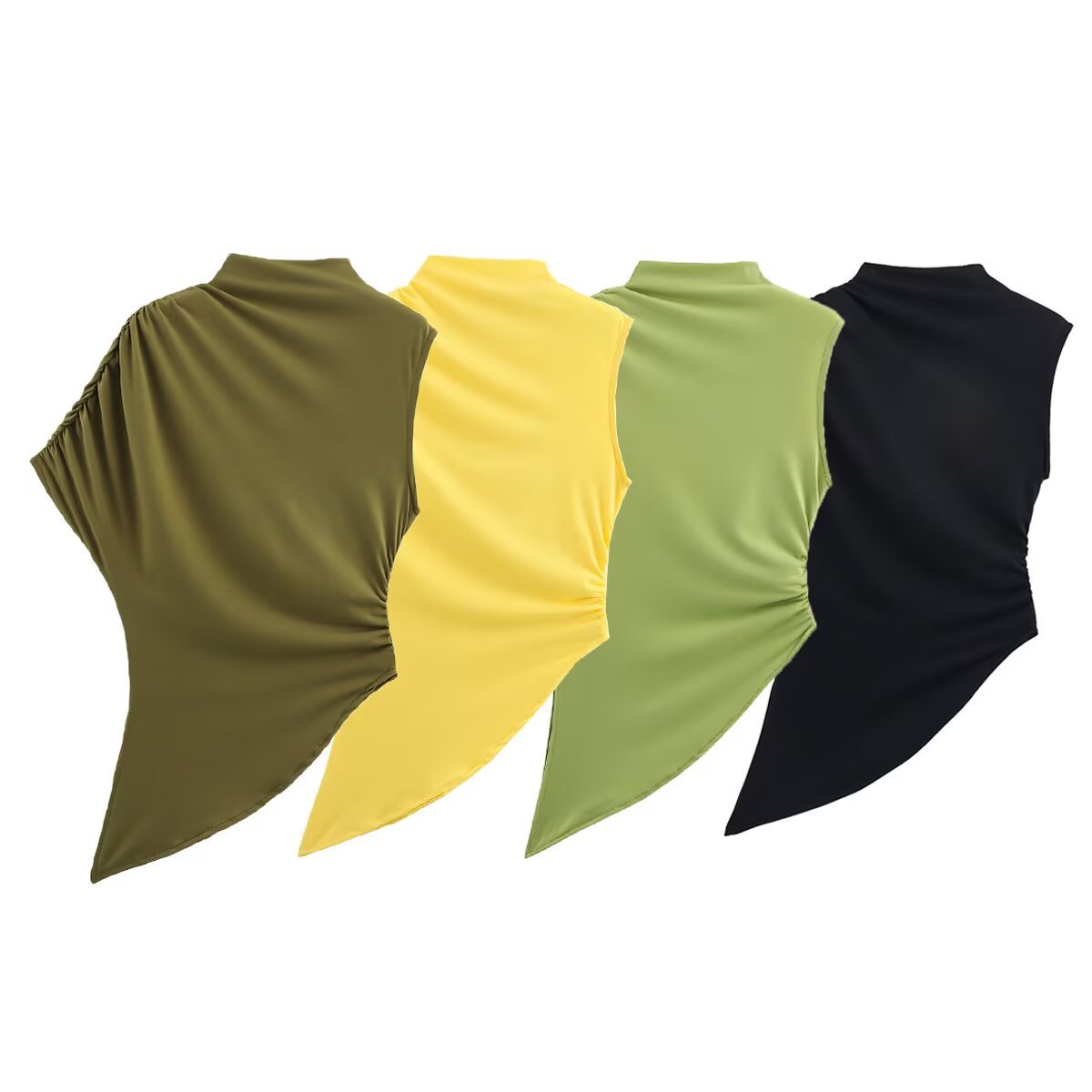 ヨーロッパとアメリカのクロスボーダー婦人服卸売女性のマルチカラー非対称気質トップシャツ