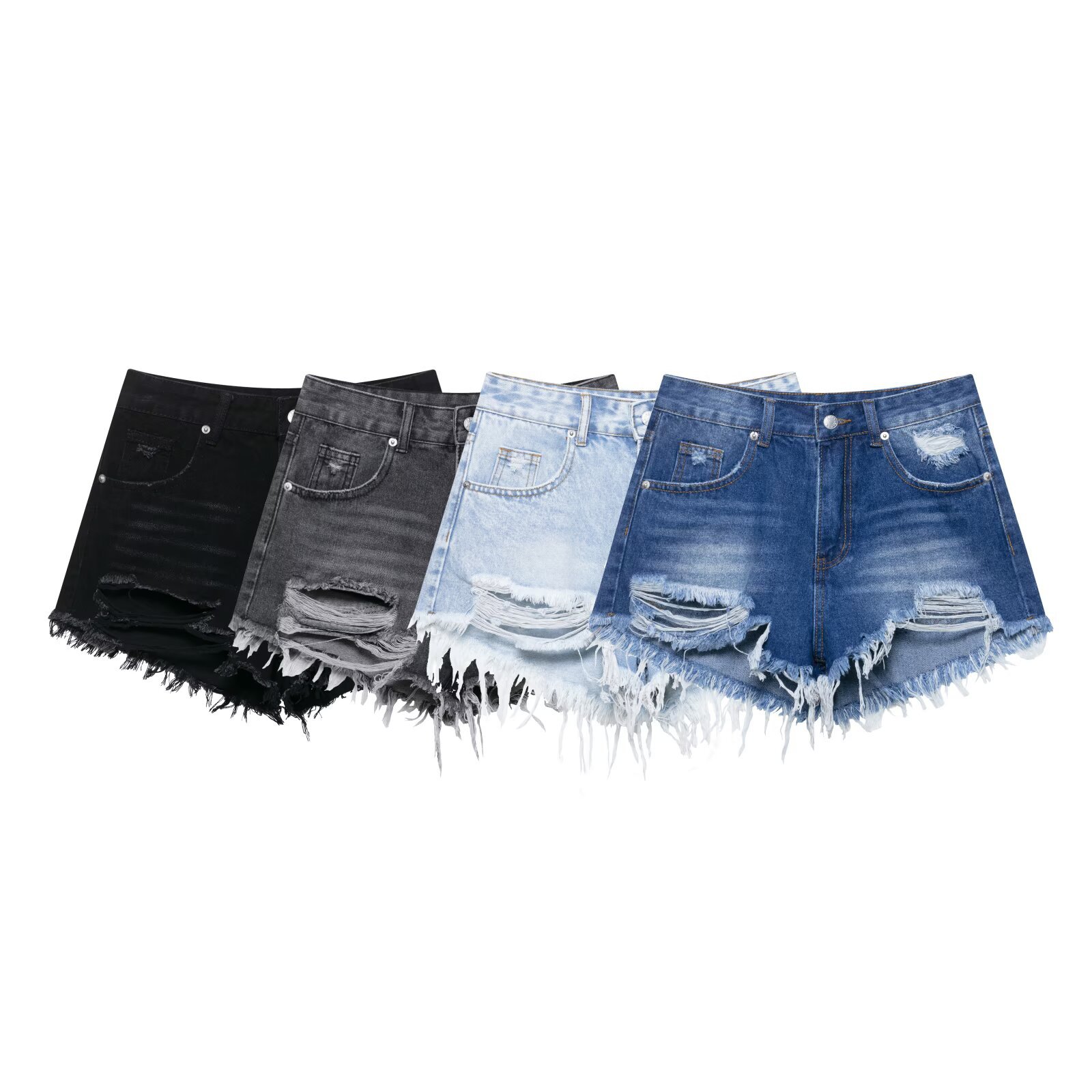 ヨーロッパとアメリカのクロスボーダー婦人服卸売女性のリッピングハイウエストカーブエッジデニムショートパンツ