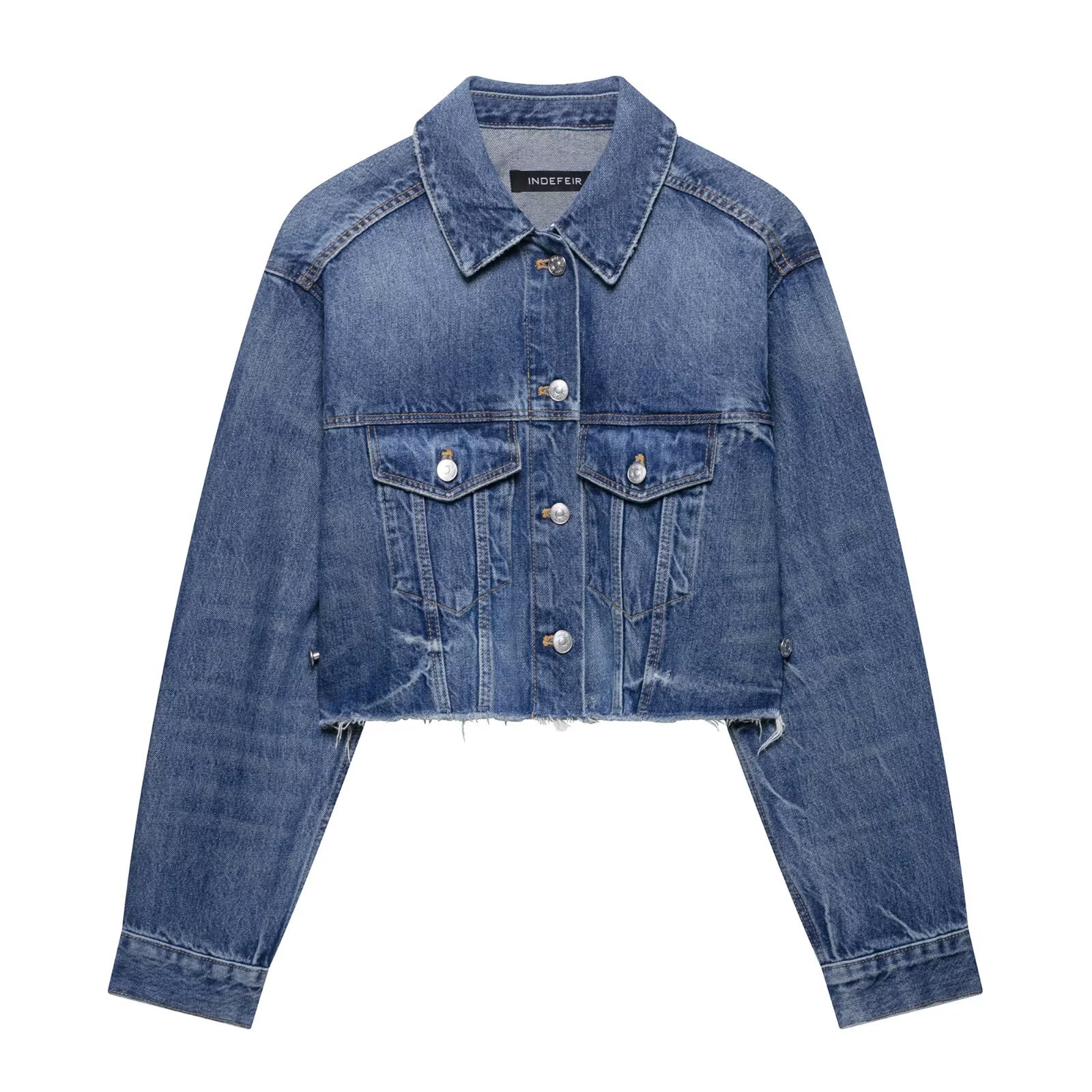 ヨーロッパとアメリカのクロスボーダー婦人服卸売女性の穴装飾ショートデニムシャツジャケット
