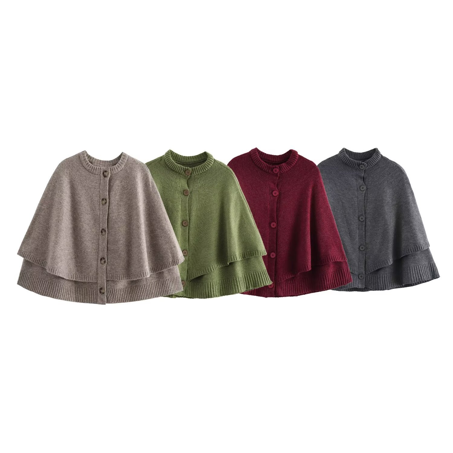 欧米のクロスボーダーの婦人服の卸売りの女性の丸首はゆったりしていて、やせている純色のメリヤスのマントです。