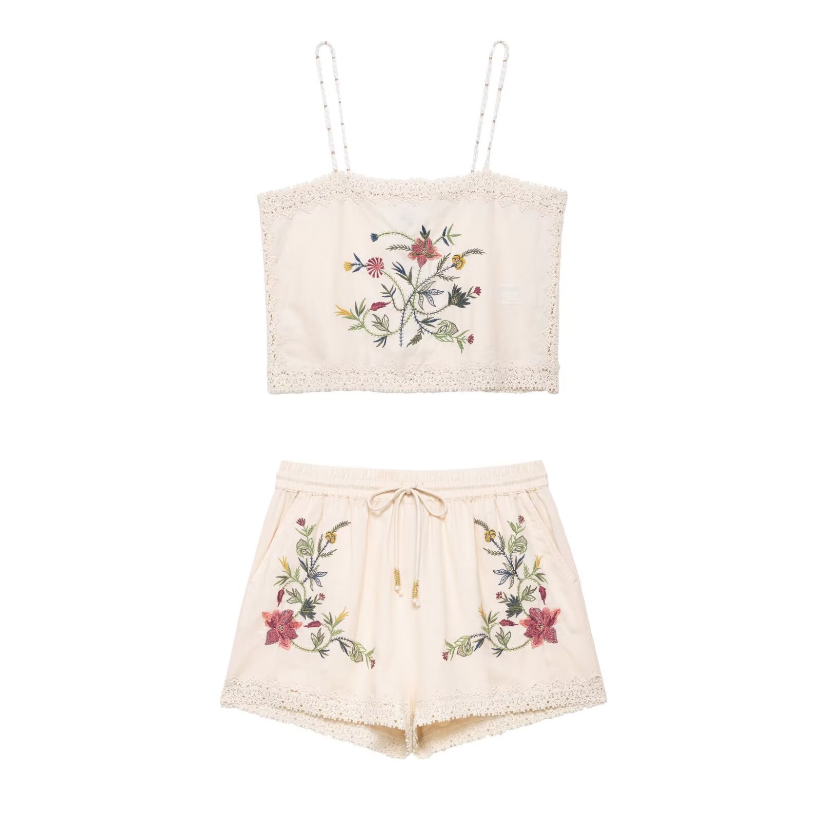 ヨーロッパとアメリカのクロスボーダー婦人服卸売女性の刺繍トップ刺繍カジュアルショーツ