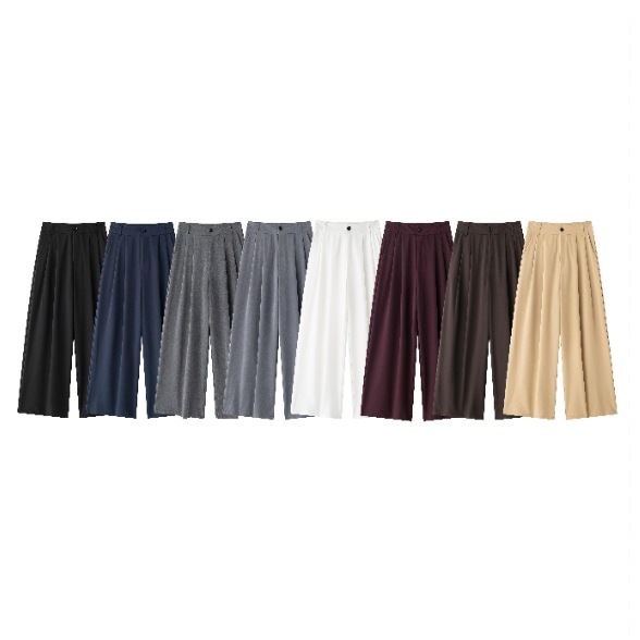 欧米の国境を越えた婦人服の卸売り女性の腰が高くてやせている純色の双タックのズボン