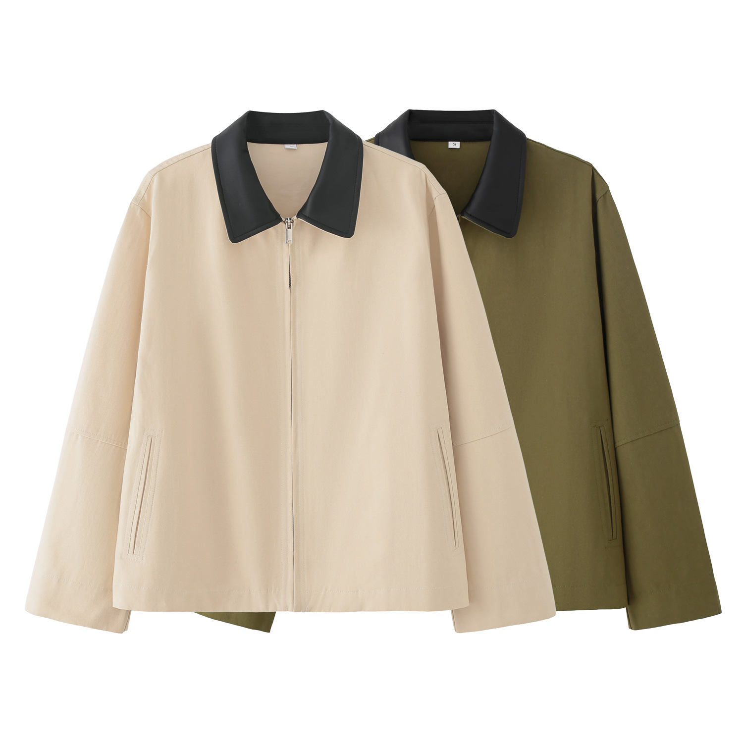 ヨーロッパとアメリカのクロスボーダー婦人服卸売女性の 2 色 PU レザーラペルカジュアルジャケット