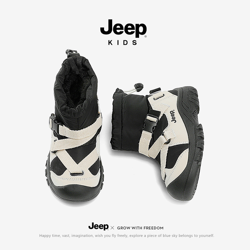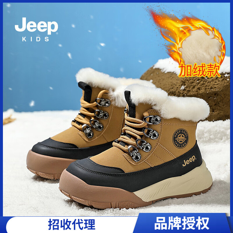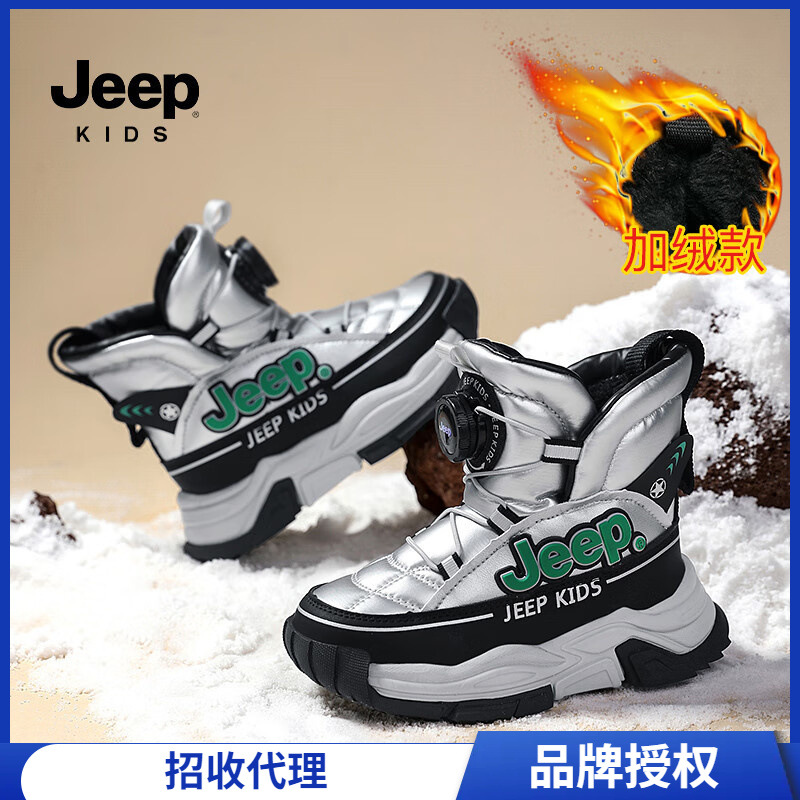 Jeep男児ブランド雪地靴冬ベルベット保温童靴2024新型児童スポーツシューズ冬綿靴