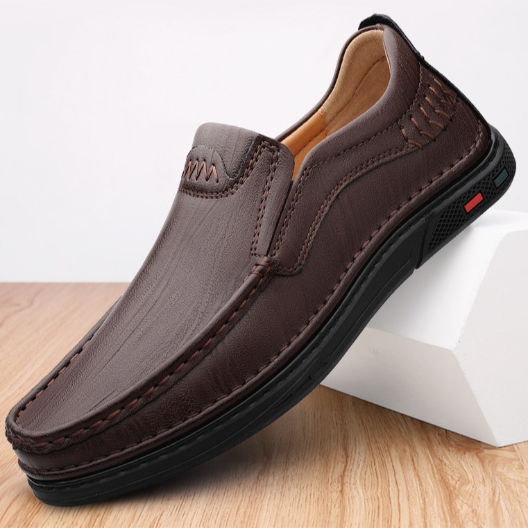 外国貿易の新しいメンズカジュアルレザーシューズ在庫あり2025クロスボーダーラージサイズトレンディなファッションソフトビーニーシューズロートップ紳士靴