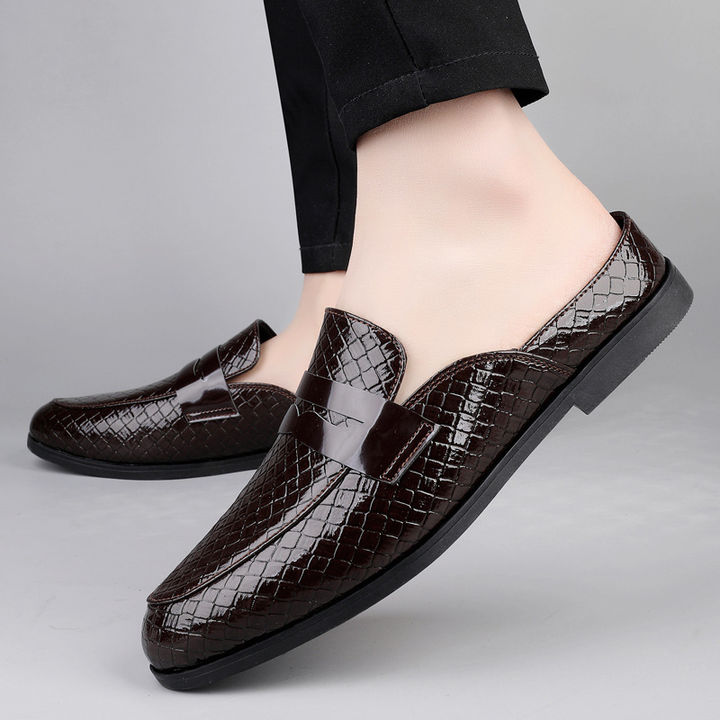 クロスボーダー大きいサイズハーフスリップレザーシューズ 2025 夏の新ローファー男性卸売ワニ柄ハーフスリップ大きいサイズメンズシューズ