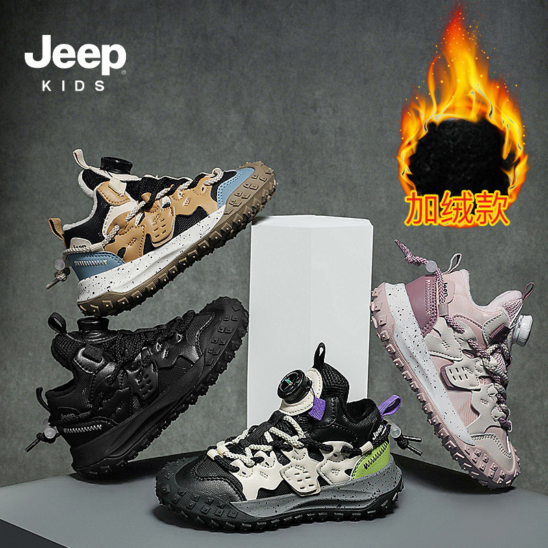 Jeep男児二綿靴秋冬とベルベットスポーツシューズ2024新型童靴皮面靴冬児童綿靴