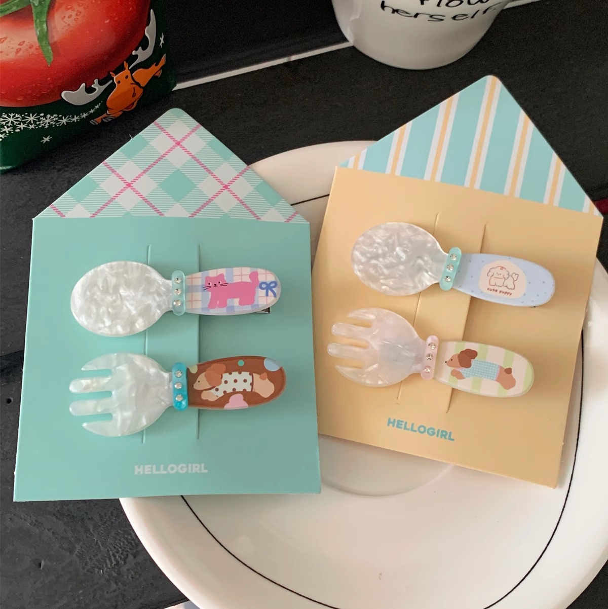 かわいい子猫子犬のヘアピンセット甘い少女心フォークスプーン前髪クリップ