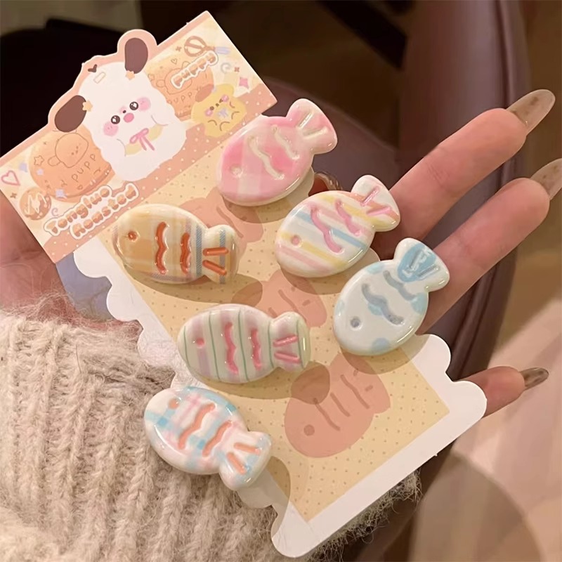 少女クリーム色のキャンディー色がかわいい鯛の小魚のヘアピンが甘いins前髪のカートゥーンを挟んでいます。