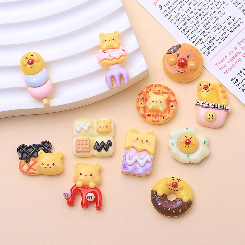 新商品の漫画のピザの維尼熊シリーズのdiy樹脂の部品のクリームのゴムの髪飾りの手の席のペンダントの穴の靴のボタン1