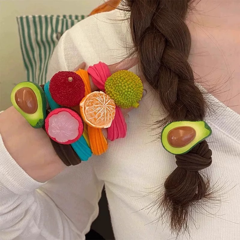 韓国の東大門のかわいいフルーツヘアバンド、多用途の春夏ヘッドバンド、カラフルな高弾性、髪を傷つけないタオルリングヘアアクセサリー