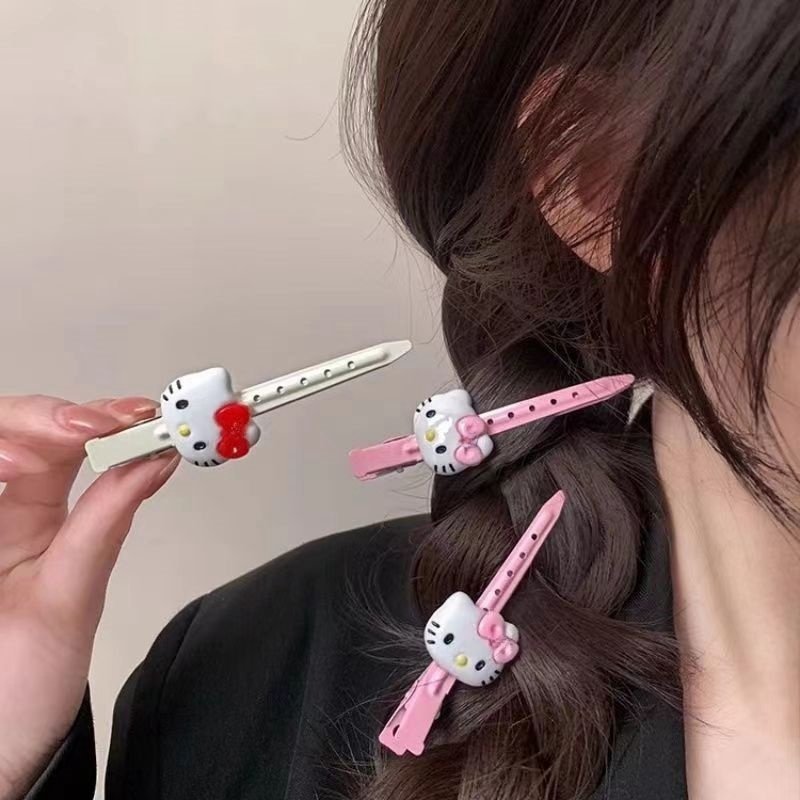かわいいピンクのキティヘアクリップの女性の痕跡のない1字の位置を決めて前髪のサイドクリップのサイドカードの化粧クリップの頭飾りを挟みます。