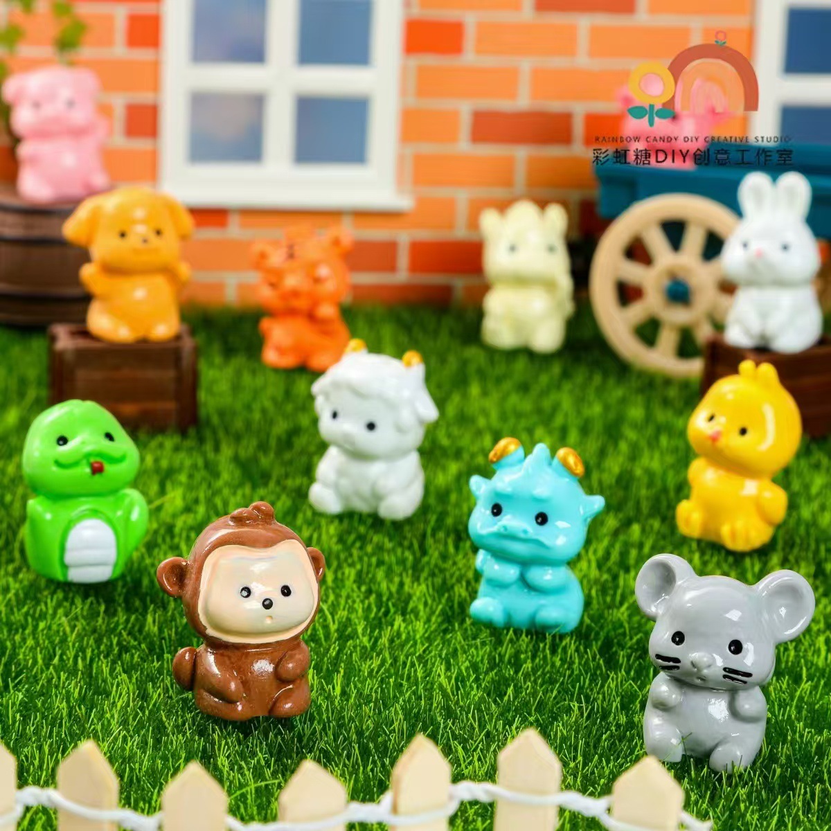 樹脂ミニチュアミニかわいい十二生肖動物漫画DIYオフィスデスクトップ装飾品材料卸売り