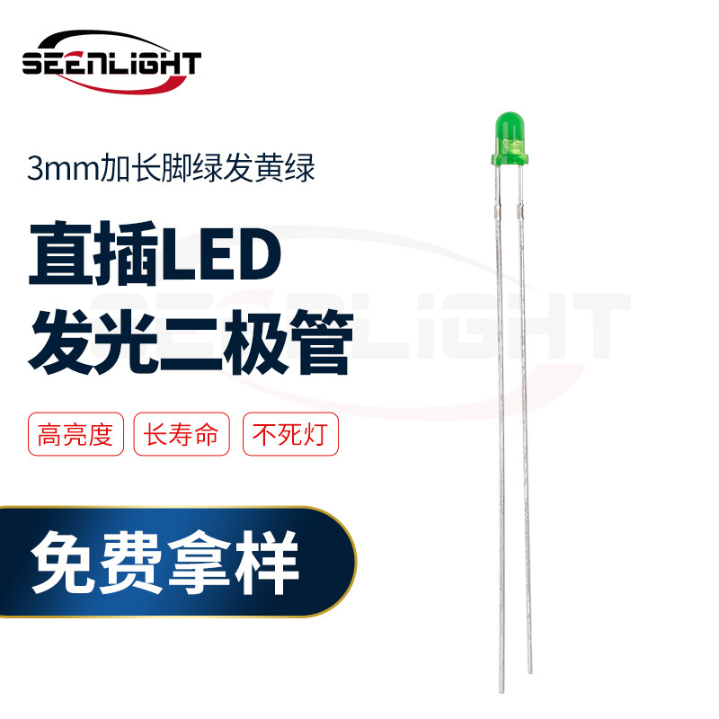 メーカー直販3mm延長足緑発黄緑直挿式led電球f3緑発緑延長足長さオプション