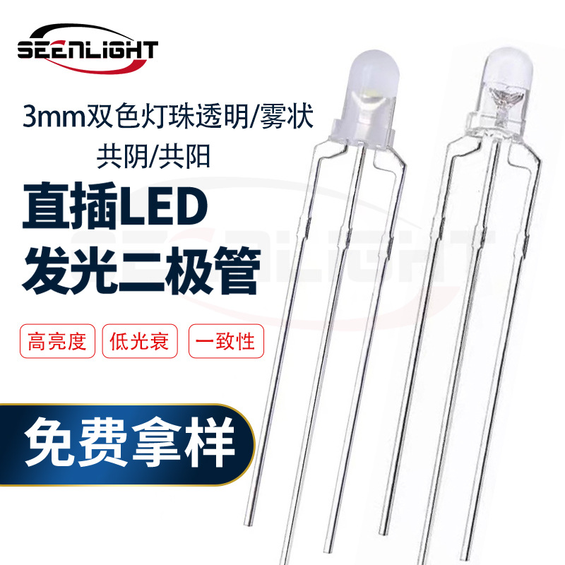 メーカー3mm透明f3直挿し2色led電球共陰共陽赤緑赤青赤黄発光ダイオード