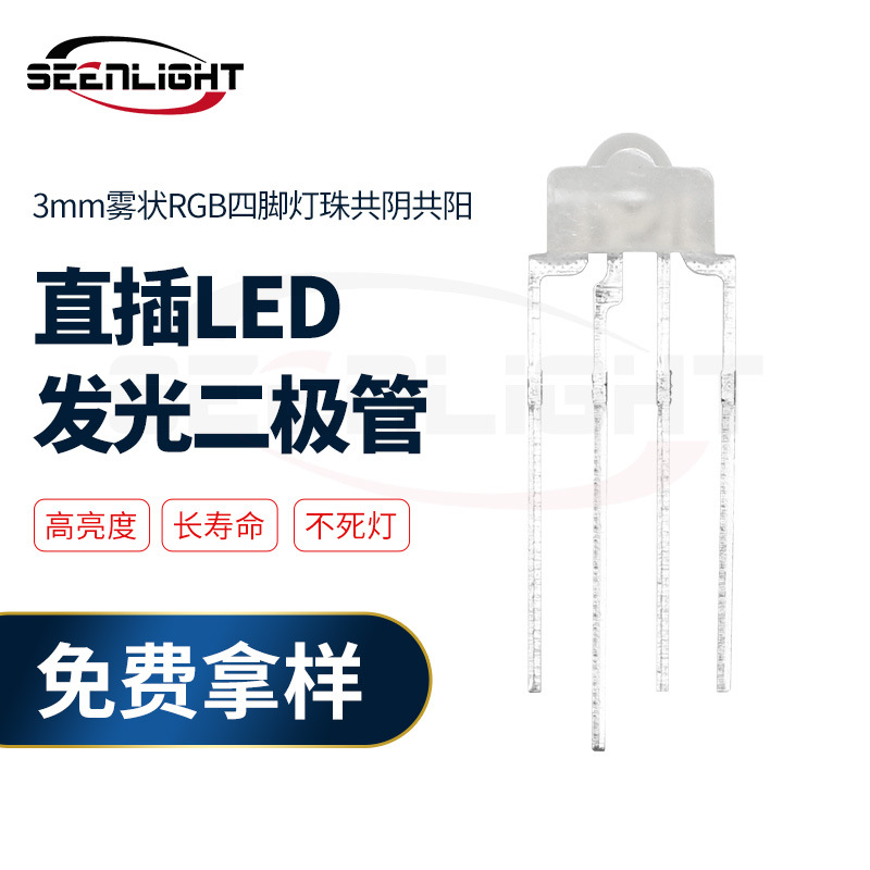 3mm霧状フルカラーrgb四脚ストレートled電球f3霧状フルカラー共陰共陽発光ダイオード