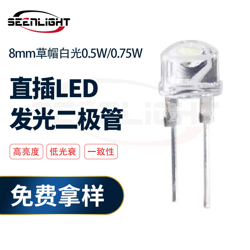 8mm発光ダイオード8mm麦わら帽子ホワイトライトビーズf8麦わら帽子ホワイトライト直挿し電球0.5w0.75wハイライト